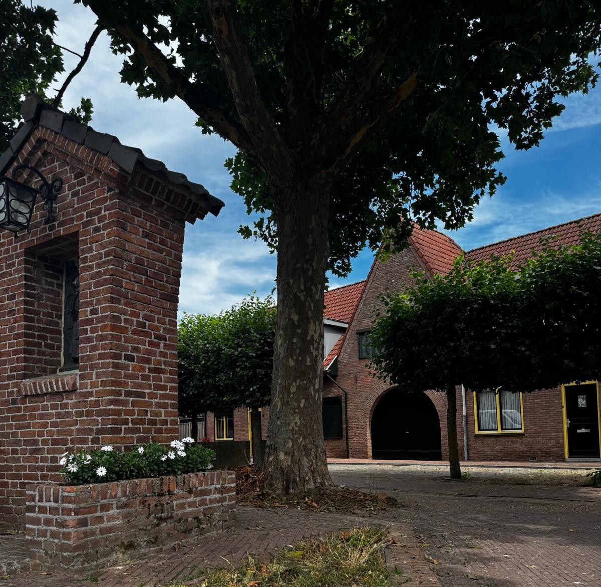 De huizen, ondanks hun hogere ligging, gedurende de tweede wereldoorlog géén schade opliepen? Als dank schonken de bewoners van het plein een St. Jozef-kapelletje.
