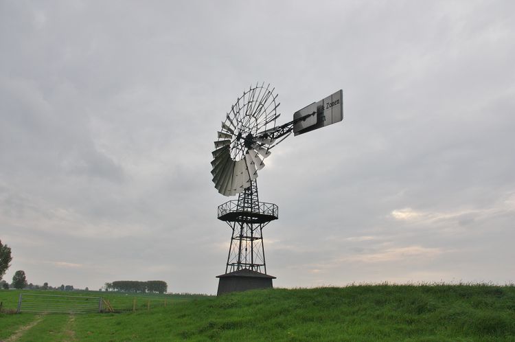 De Schrikmolen staat in een uiterwaard van de Bergsche Maas in Genderen.