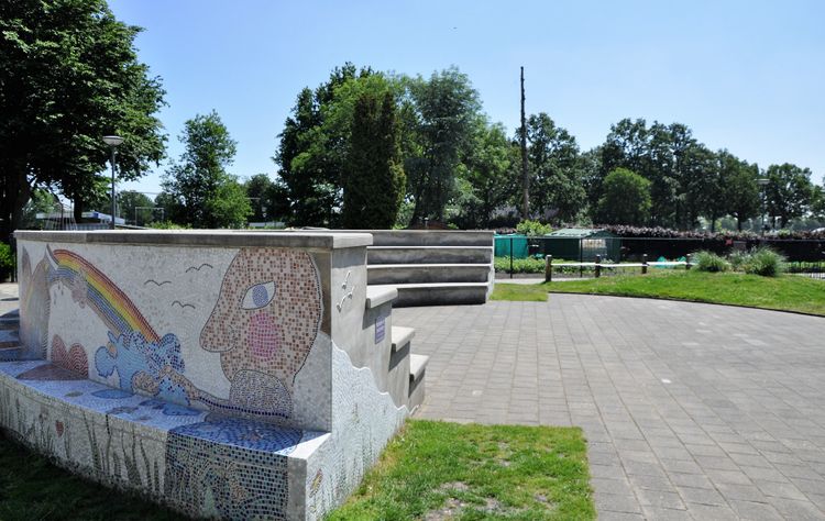 Kenmerkend aan het Openluchttheater is het kleine formaat en daarmee de knusse sfeer. Aan de achterzijde bevindt zich een 22 meter lange mozaïekbank.