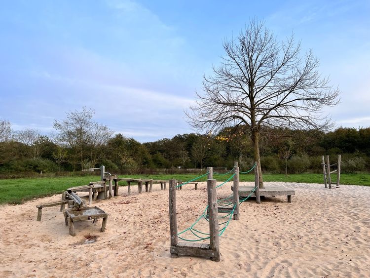 Kinderen kunnen op natuurspeelterrein 't Oliemeulen in Schaijk heerlijk naar hartenlust klimmen, klauteren en met water spelen.
