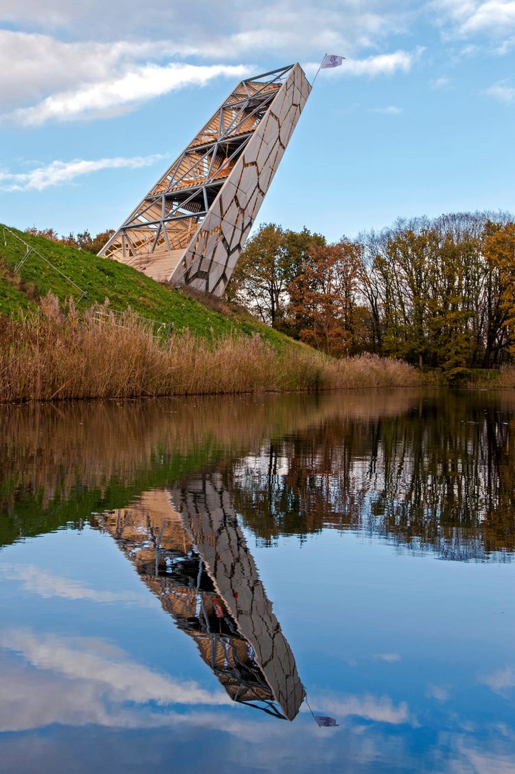 Een vogelkijkhut van RO&AD architecten is geplaatst bij de Roode Weel en biedt een schitterend uitzicht over het natuurgebied.